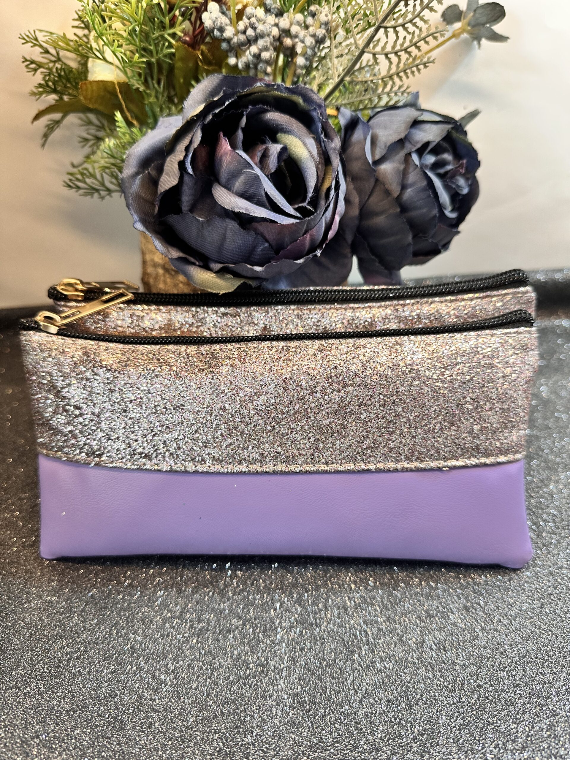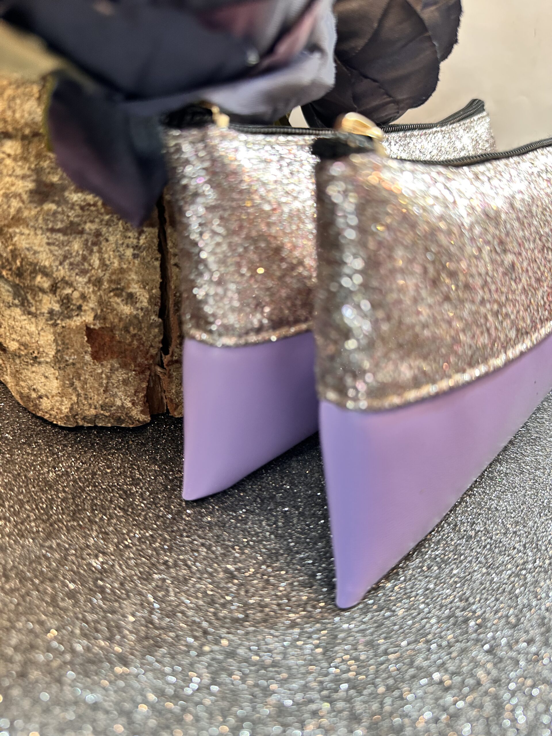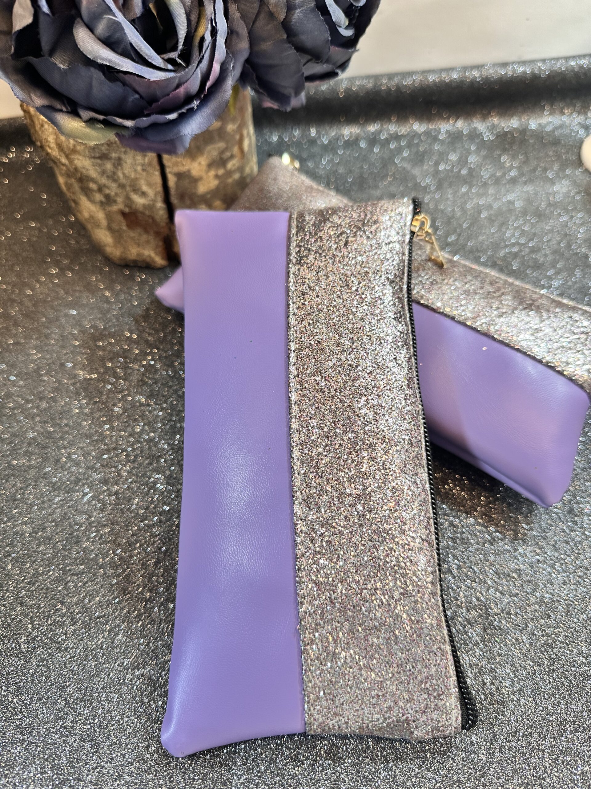 Üst pırıltılı gümüş alt lila cüzdan…