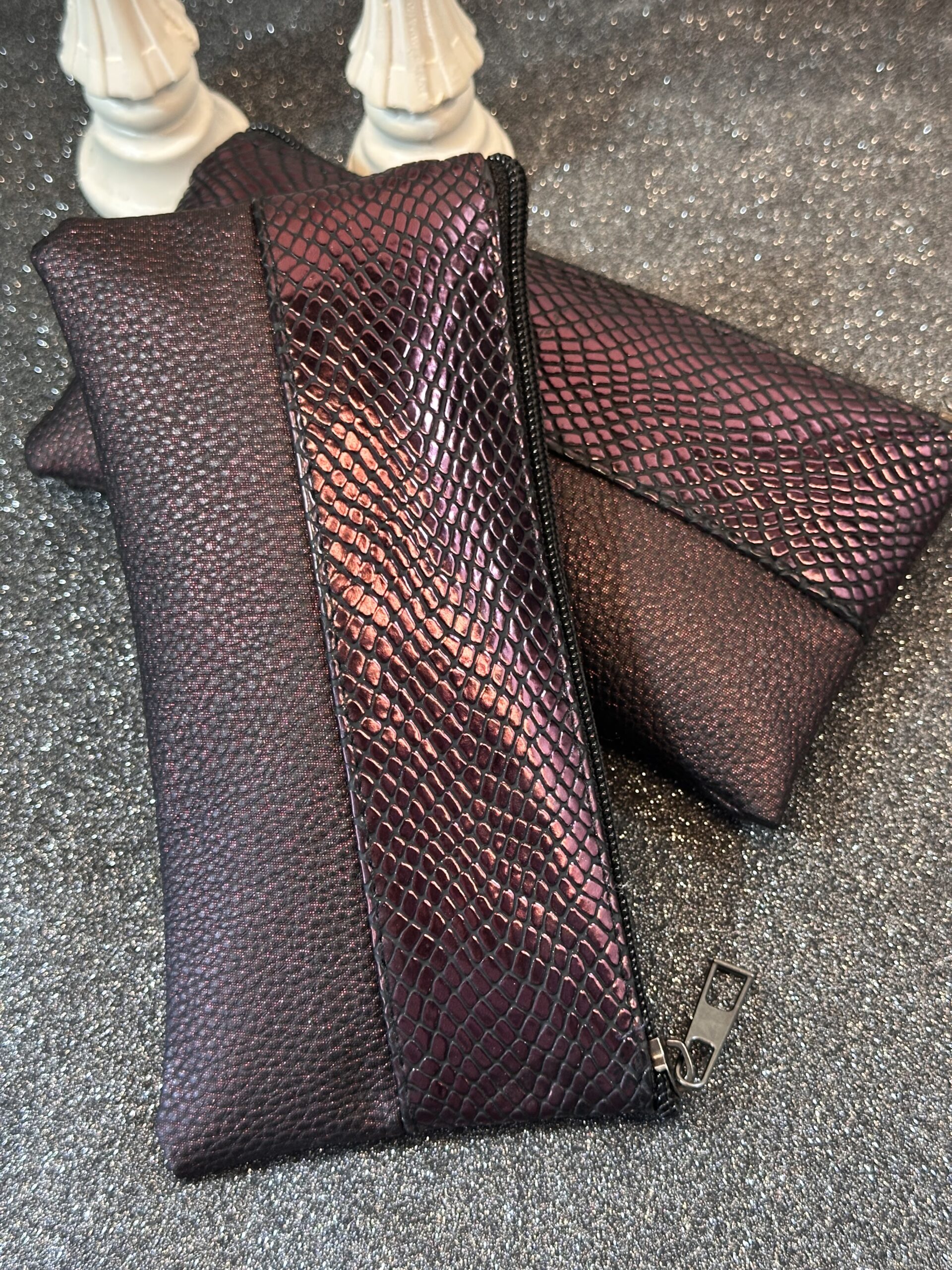 —Üst ışıltılı mürdüm alt mürdüm çift renk cüzdan